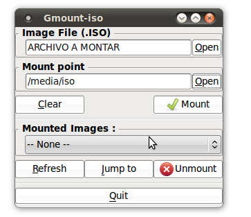 -1) Abrir una terminal $ cd /media y luego $ sudo mkdir ISO -2) Ahora escribir $ sudo apt-get install gmountiso -3) Por ultimo ir a Aplicaciones-Herramientas de Sistema y ejecutarlo. Tiene que completar los diálogos y tiene que quedar algo como esto: