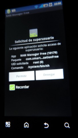 Vamos a hacer que el celular nos de permisos de root, o rootearlo como le decimos algunos :D . Esto nos da la posibilidad de darle permisos especiales a algunas aplicaciones, en este caso se los daremos a una aplicación llamada Quarantine, que nos permite encerrar algunas aplicaciones para que parezcan desinstaladas y así no se puedan abrir.