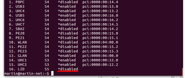4) Ahora ejecutar hasta que el último valor quede en “disabled”: $ sudo acpitool -W 16