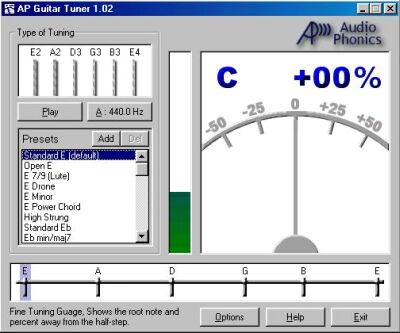 Buscando algún software para afinar mi vieja y pobre guitarra encontré este maravilloso programa. Las funciones son casi las mismas que tienen los afinadores que se pueden comprar por 10 dólares en Argentina.